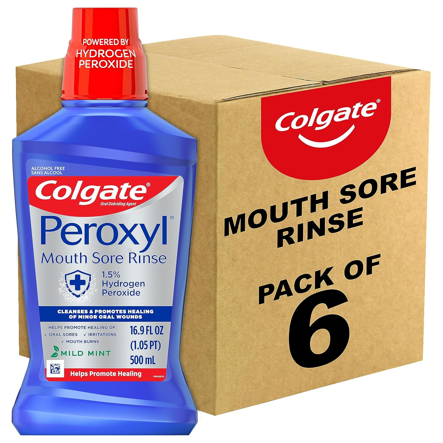 Colgate Peroxyl is an alcohol-free mouthwash formula that cleanses for people with sensitive mouths. The alcohol-free mouthwash formula cleanses and helps promote healing of minor oral wounds, like mouth sores, irritations and mouth burns, all while freshening breath.