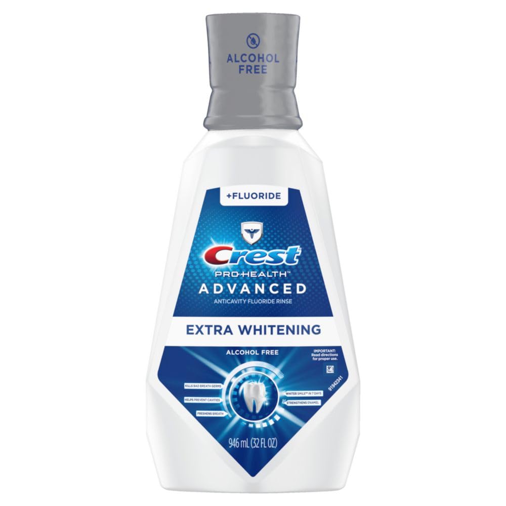 Crest Pro-Health Advanced Mouthwash, Alcohol Free, Multi-Protection, Fresh Mint, 1 L (33.8 fl oz), Pack of 2, Blue