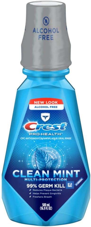 Crest Pro-Health Advanced Multi-Protection Mouthwash, Alcohol Free Mouthwash, Fresh Mint, 500 mL (16.9 Fl Oz), Pack of 4, Crest Mouthwash, Flouride Mouthwash