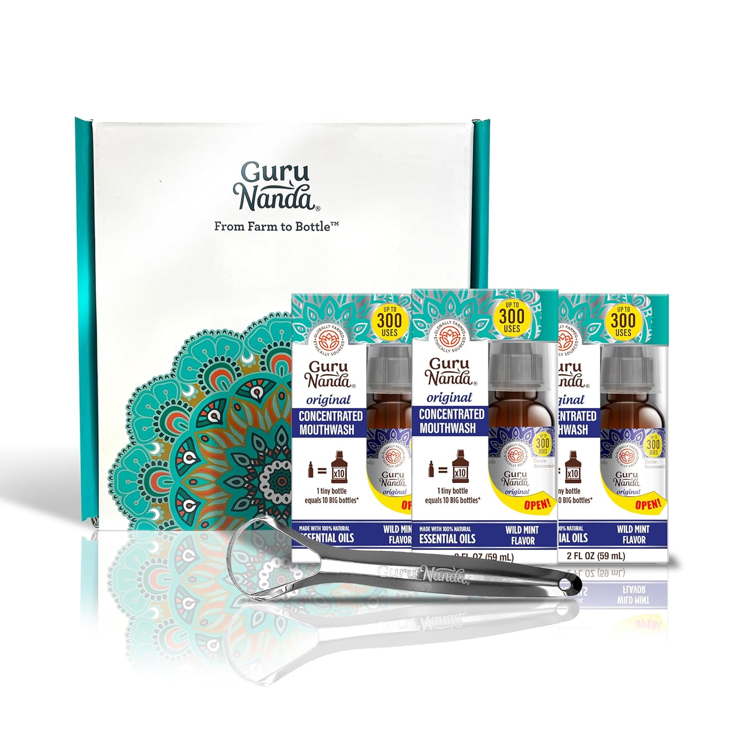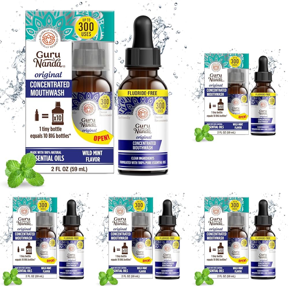 GuruNanda Concentrated Mouthwash (2 fl oz), Fluoride-Free, Mint Mouthwash with Natural Essential Oils, Supports 300 Rinses, Aids in Fresh Breath
