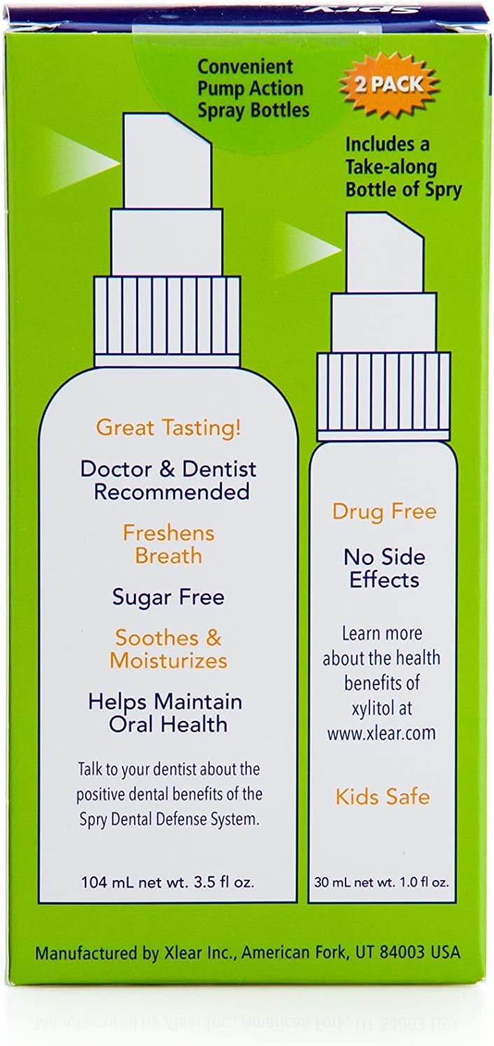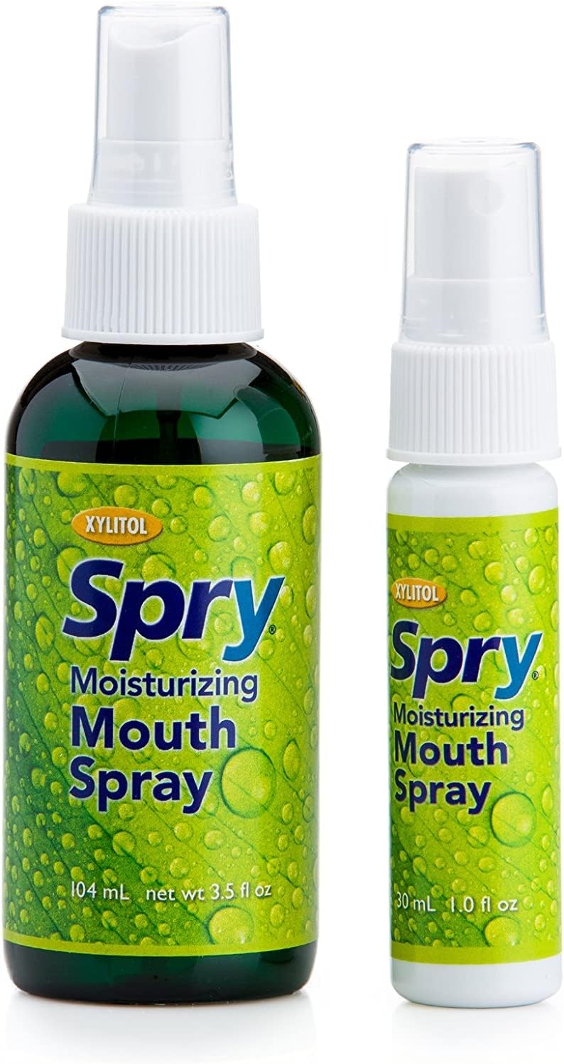 Spry Natural Xylitol Moisturizing Dry Mouth Spray, Stop Bad Breath, Increase Saliva Production, Non-GMO, Gluten-Free On The Go Oral Care with Spearmint Flavor, 4.5 fl.oz (Pack of 2)