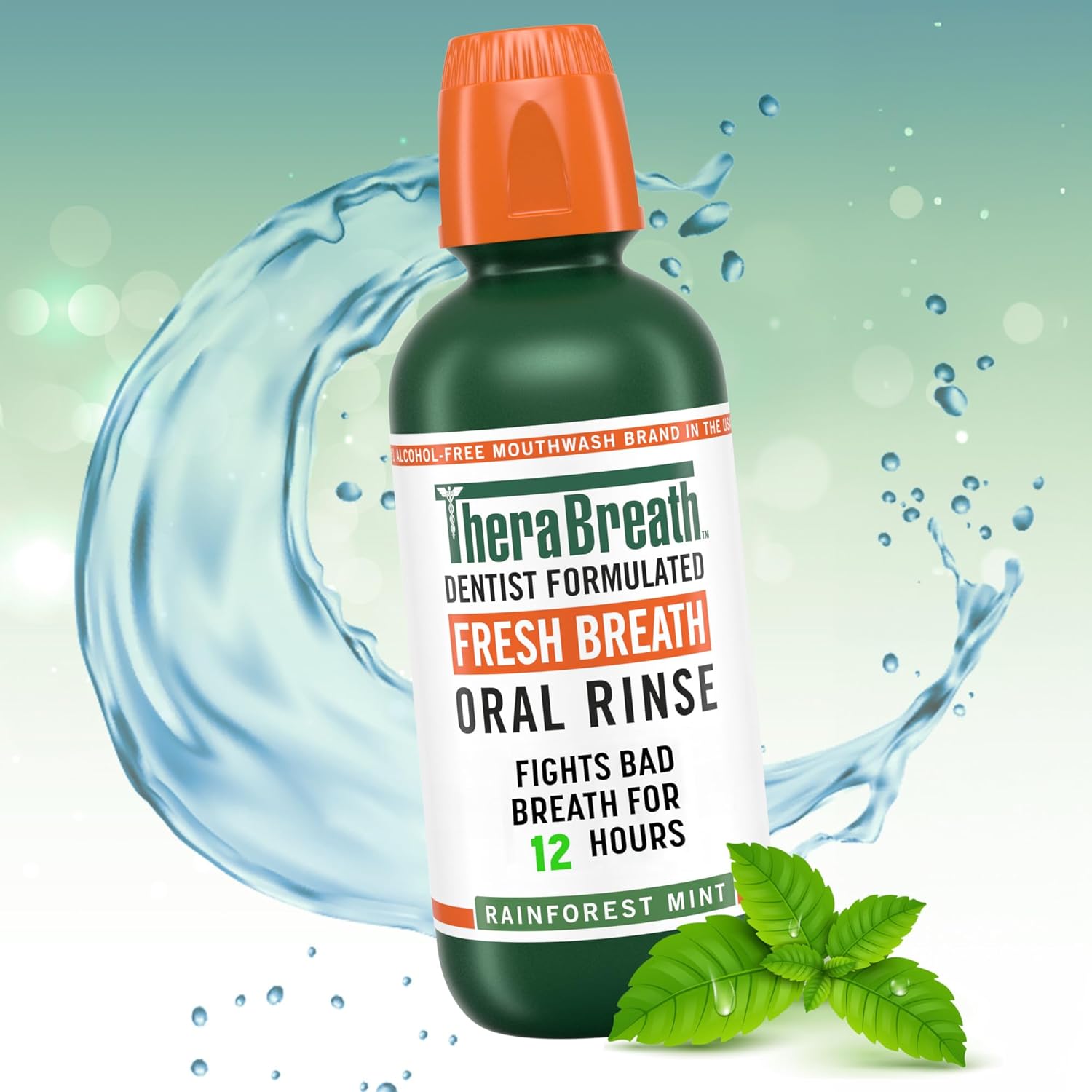 TheraBreath Fresh Breath Mouthwash, Icy Mint Flavor, Alcohol-Free, 16 Fl Oz (Pack of 2)